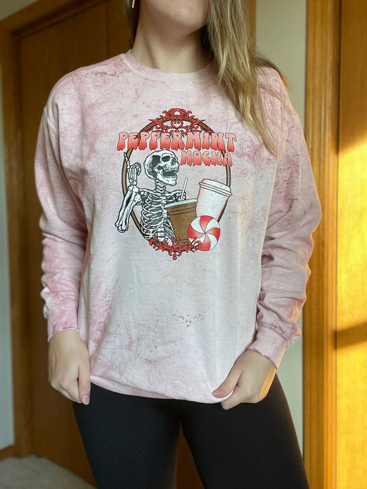 Peppermint Mocha Skeleton Long Sleeve Graphic Colorblast Crewneck
