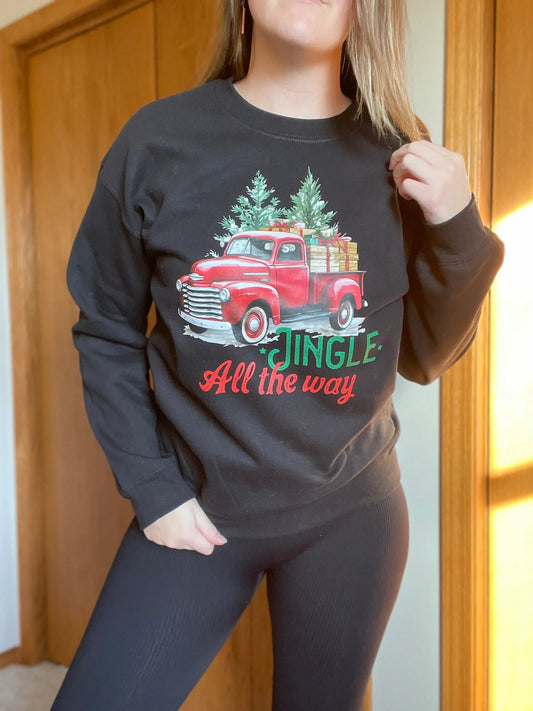 Jingle All The Way Vintage Truck Christmas Long Sleeve Graphic Crewneck