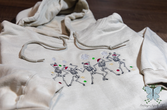 Dancing Christmas Skeletons Embroidered Crewneck/Hooded Sweatshirt