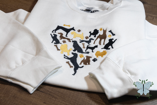 Dog Heart Embroidered Crewneck/Hooded Sweatshirt