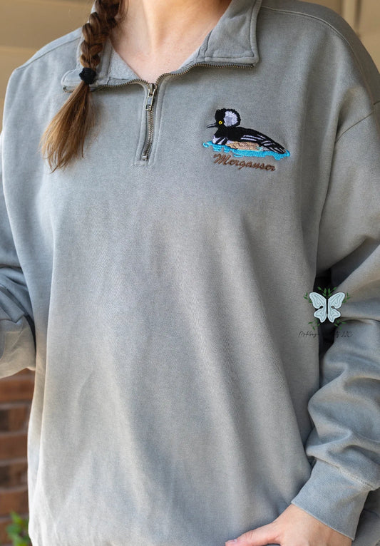 Merganser Duck, Duck Hunting Comfort Colors Quarter Zip Pullover