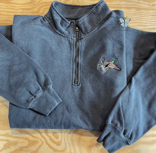 Mallard Duck Flying Hunting Embroidered Comfort Colors Quarter Zip Pullover