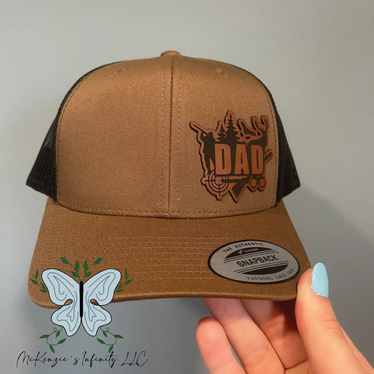 DAD Hunting Leather Patch Adult Retro Trucker Hat/Cap - Coyote Brown