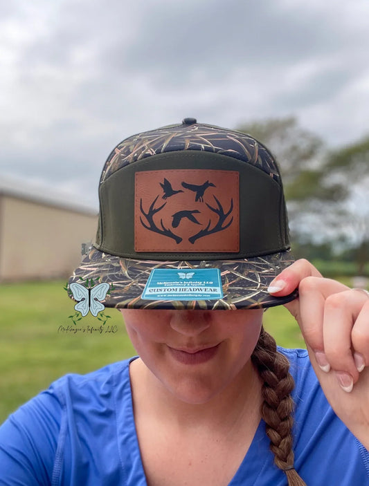 Antlers & Ducks Leather Patch - Waterproof Midnight Marsh 7 Panel Hat