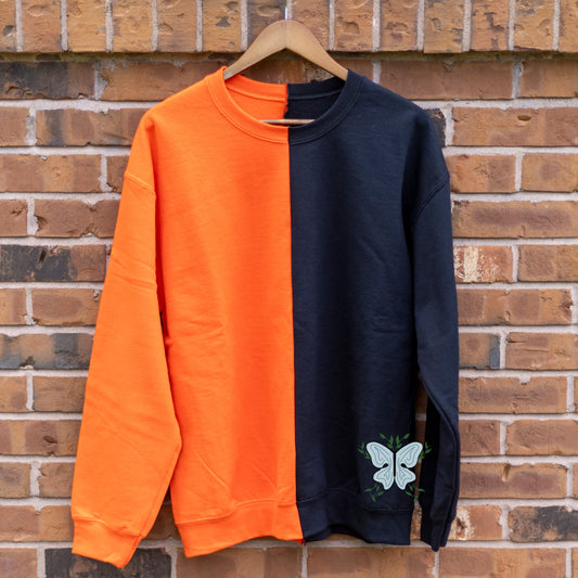 Orange & Black Split Colored, Two-Toned, Crewneck Sweatshirt