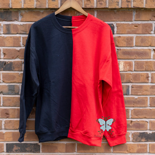 Red & Black Split Colored, Two-Toned, Crewneck Sweatshirt