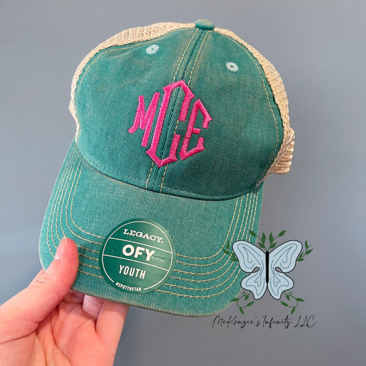 YOUTH Personalized Monogrammed Embroidered Legacy Old Favorite Trucker Cap/Hat