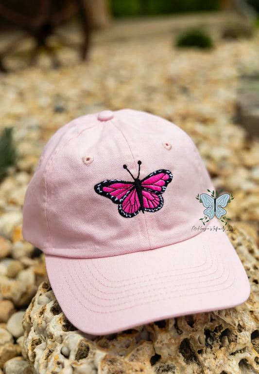 YOUTH Pink Butterfly Embroidered Dad Cap/Hat